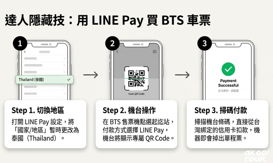 BTS搭乘方式重點|用台灣LINE Pay切換泰國區也能買票