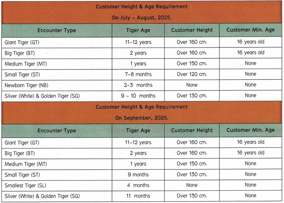 Package C:Big+Medium or Small+Sliver&Golden Tigers 30 mins-Pax /With car charter only