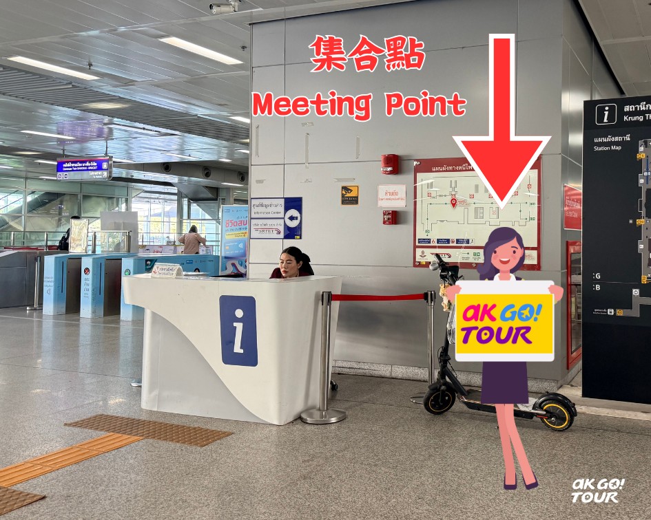 A: 集合時間為早上07:10(曼谷阿皮瓦中央車站「i」資訊櫃檯前),導遊會舉 AK GO 牌迎接。
