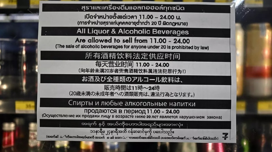 這項禁令當年是為了避免泰國上班族及工人上班偷喝、影響工作狀態及安全,結果卻變成外國旅客最常困惑的情節:「明明超商冰櫃裡滿滿啤酒,為什麼不能買?」