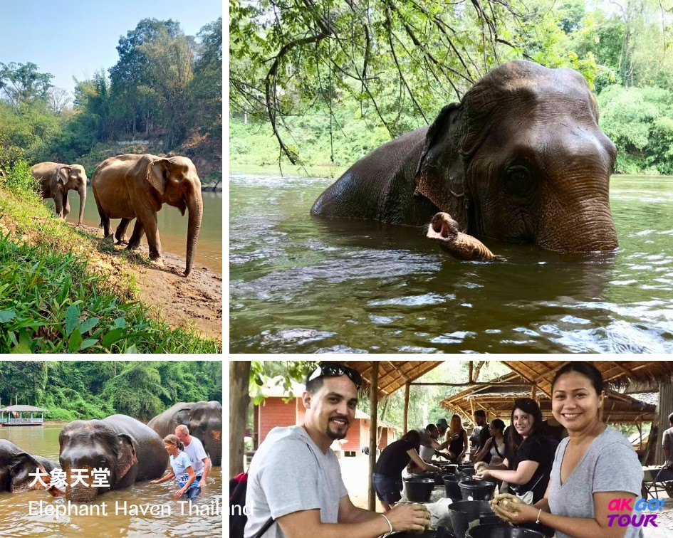 北碧府的大象天堂位在群山綠意之間,年輕或是年者、病、殘的大象,每天都能過著幸福的生活。讓我們用最自然的方式,與大象互動,學習並牠們的生活方式吧!