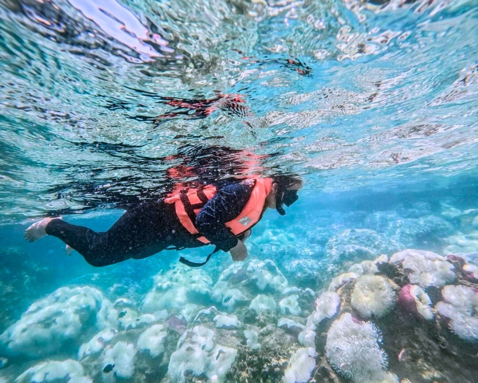海水清澈、能見度高,非常適合浮潛觀察海底生物,可以看到五顏六色的珊瑚礁和各種熱帶魚。