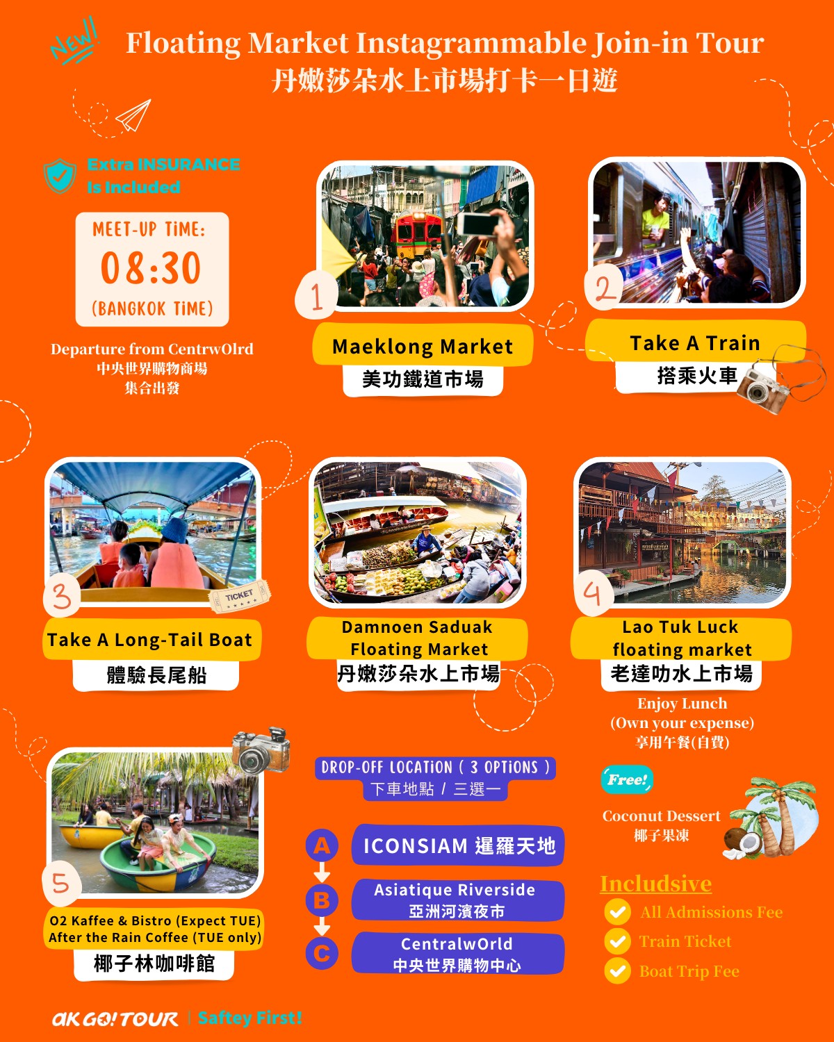 全泰國最受歡迎的一日遊行程,AK GO推出全新深度加強版,跟著當地人坐上火車,