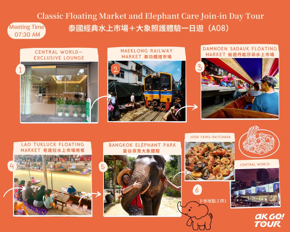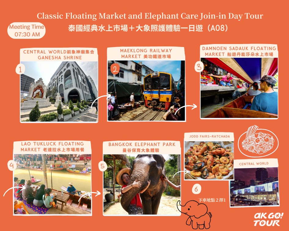 水上市場+鐵道市場+大象互動+逛夜市!一次解鎖泰國經典體驗,CP值最高的一日行程快速GET!