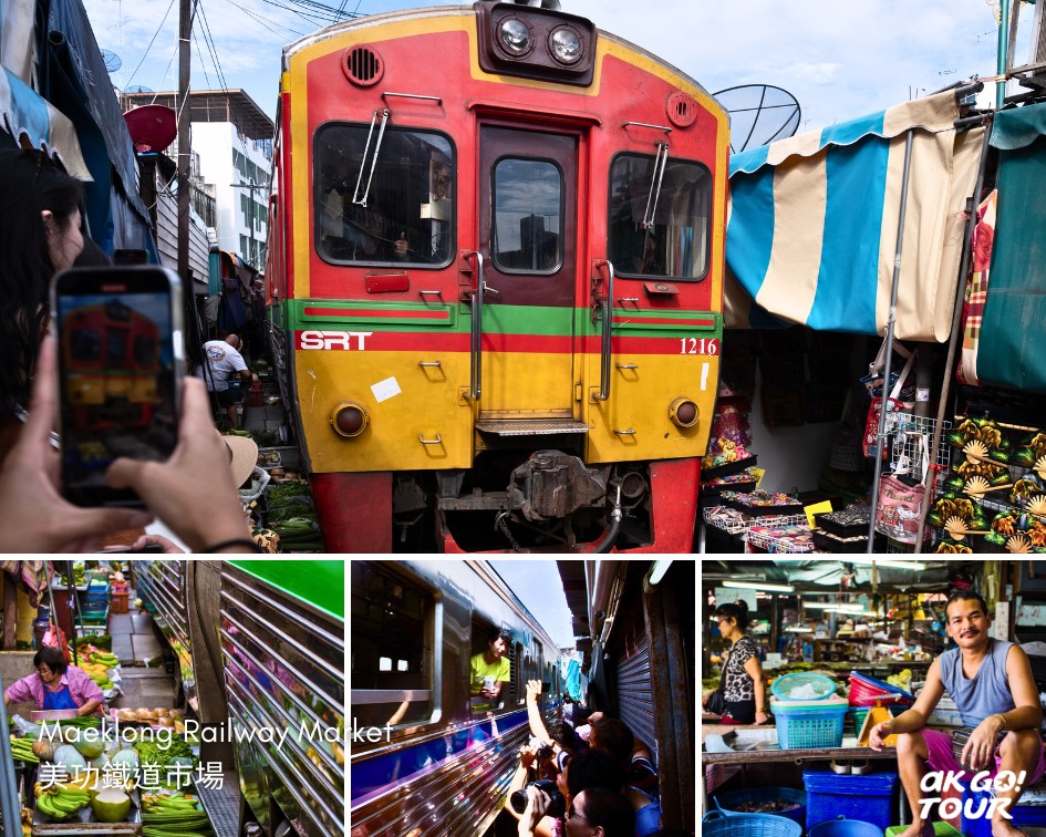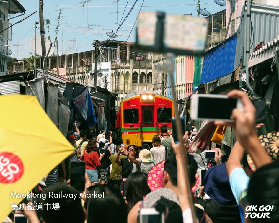 曼谷自由行必拍照打卡經典!鐵道市場位於泰國的『MAKELONG STATION』車站旁,是泰國極少數建立在鐵軌上的傳統市場,觀看市集攤販是如何隨著火車的來去,將攤位收放自如的獨特生活型態!